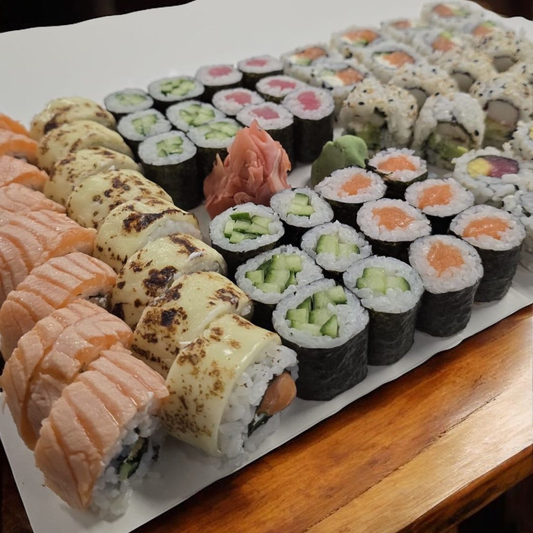 Maki Philadelphia cu brânză topită (8 buc): Un "twist" caloric și delicios al variantei clasice. Are o felie de brânză (tip cheddar ) așezată peste rulou și apoi torțată (topită cu flacăra), oferind o aromă ușor afumată.